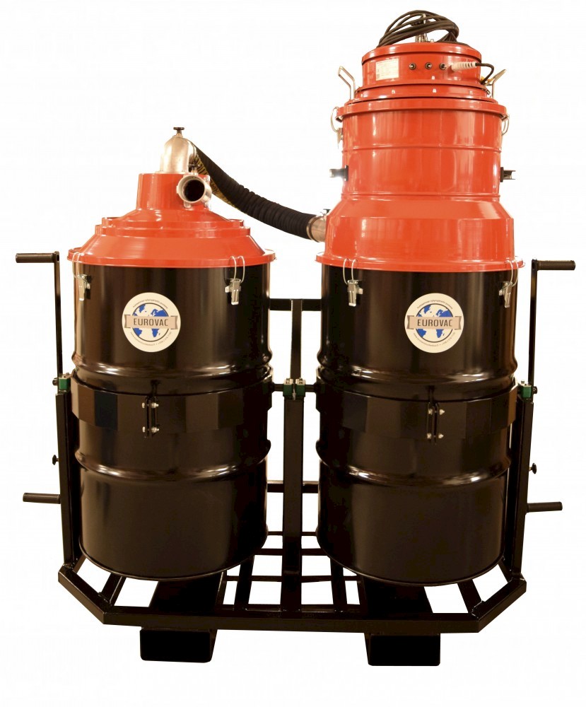 Eurovac 53 tynnyri-imuri + sykloni 200 l säiliöllä ja matalalla kannella sovitettuna trukilla liikuteltavaan veivikippialustaan. Kuuman tuhkan imurointiin.