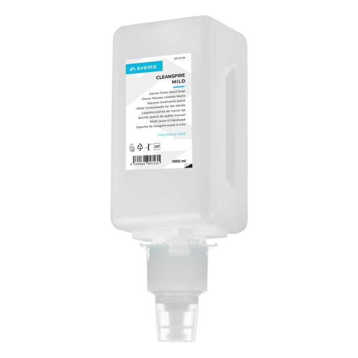 Svema Cleanspire Mild on hajusteeton, väriaineeton vaahtomainen käsisaippua, joka on erittäin hellä iholle.